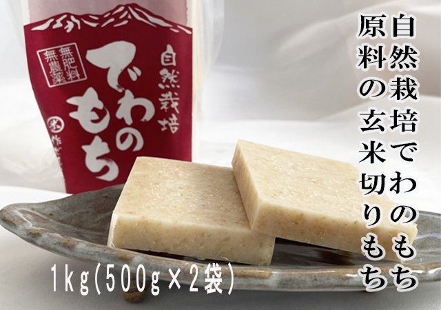 自然栽培でわのもち原料の玄米切りもち1kg(500g×2袋)60サイズ