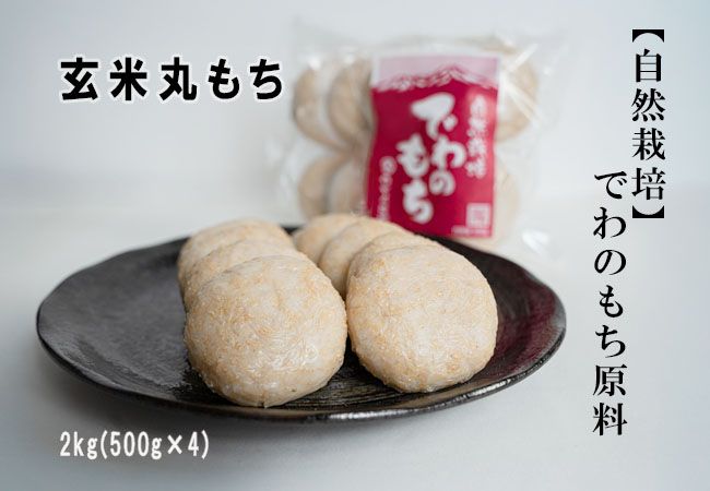 自然栽培でわのもち原料の玄米丸もち2kg(500g×4袋)80サイズ